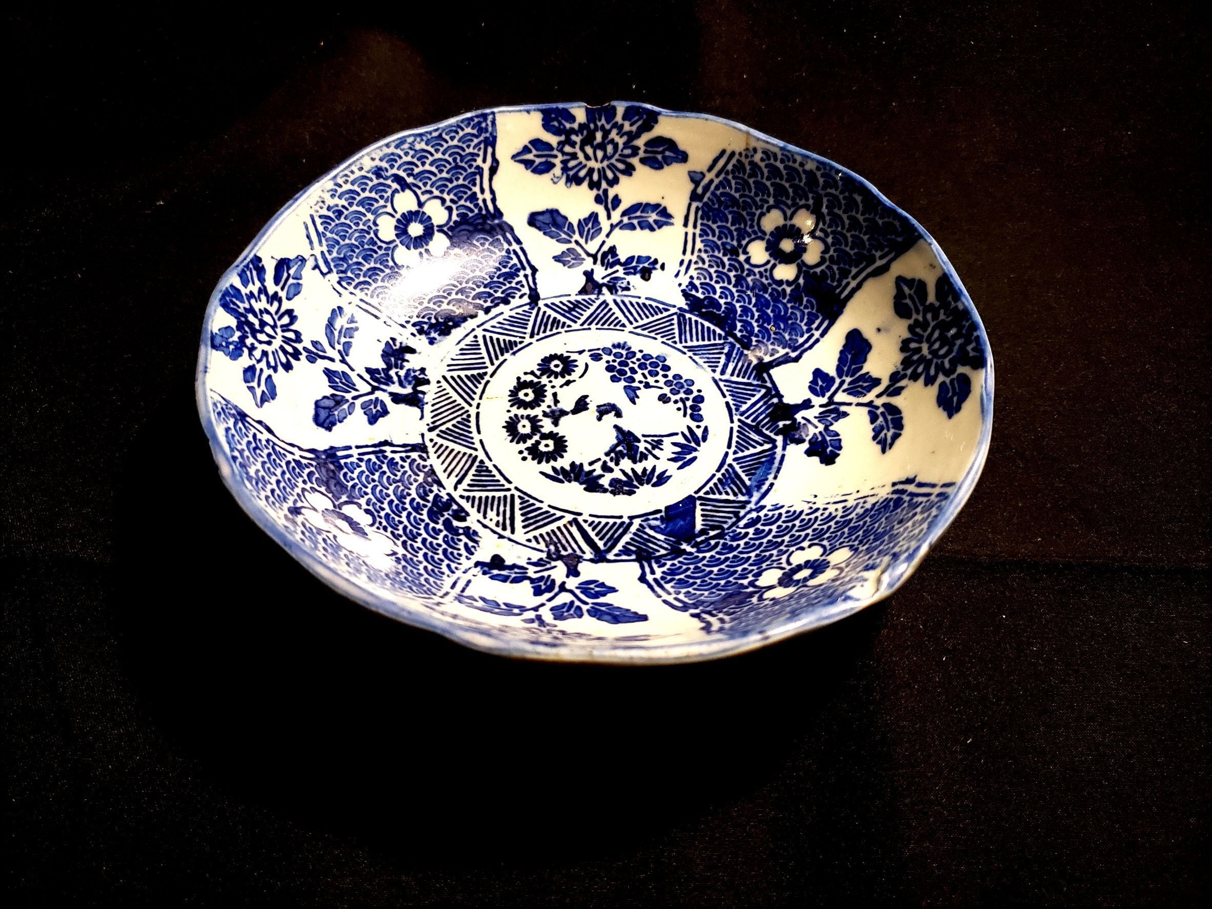 A sometsuke (blue-and-white) namasu bowl from the Meiji to Taishō period.