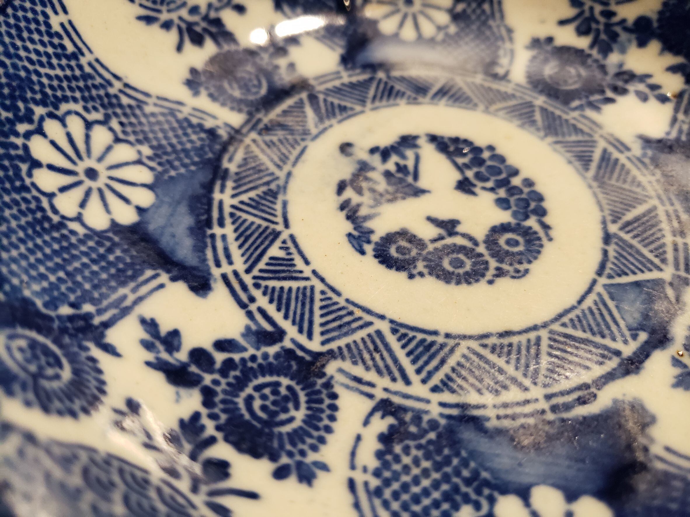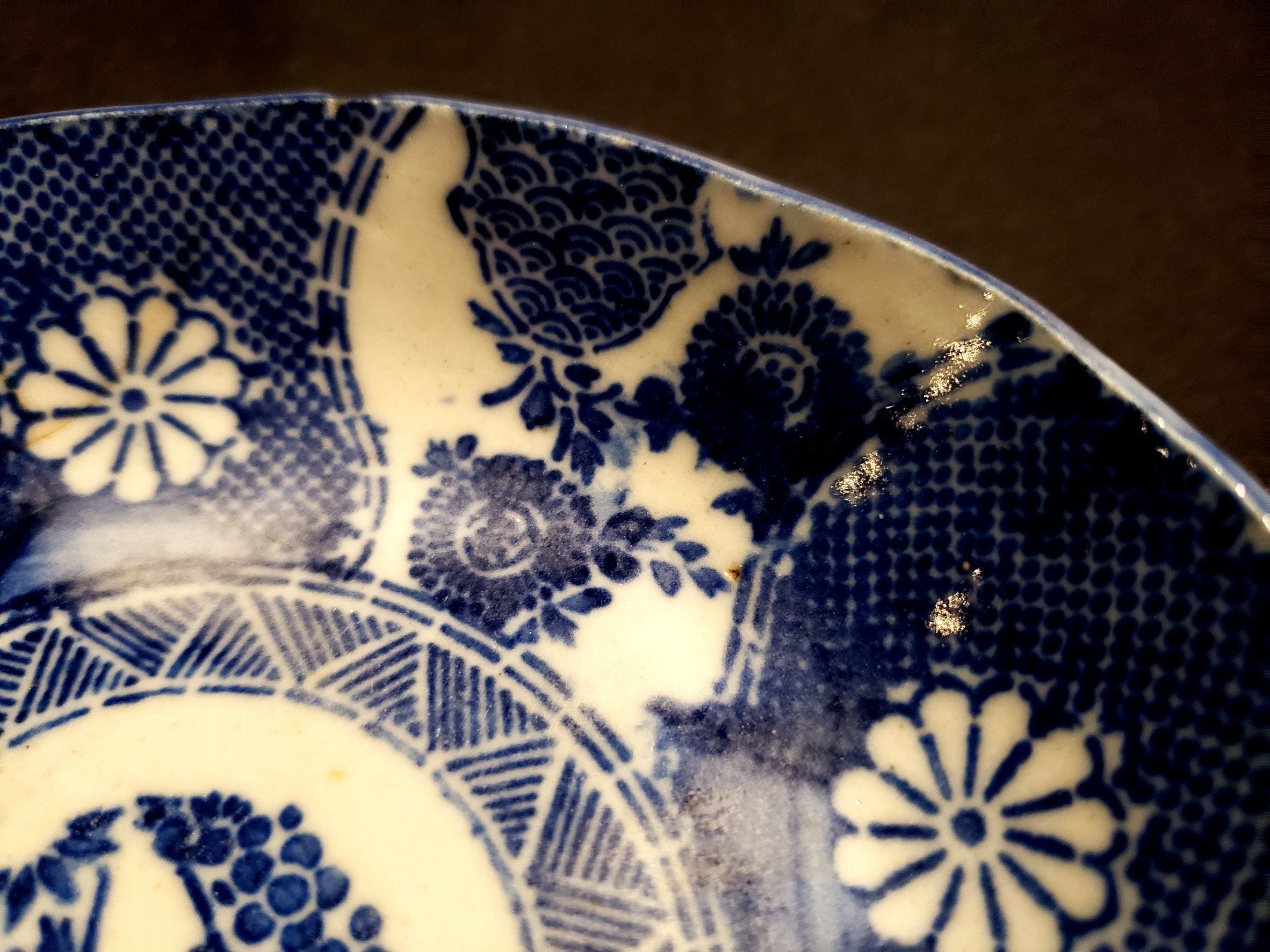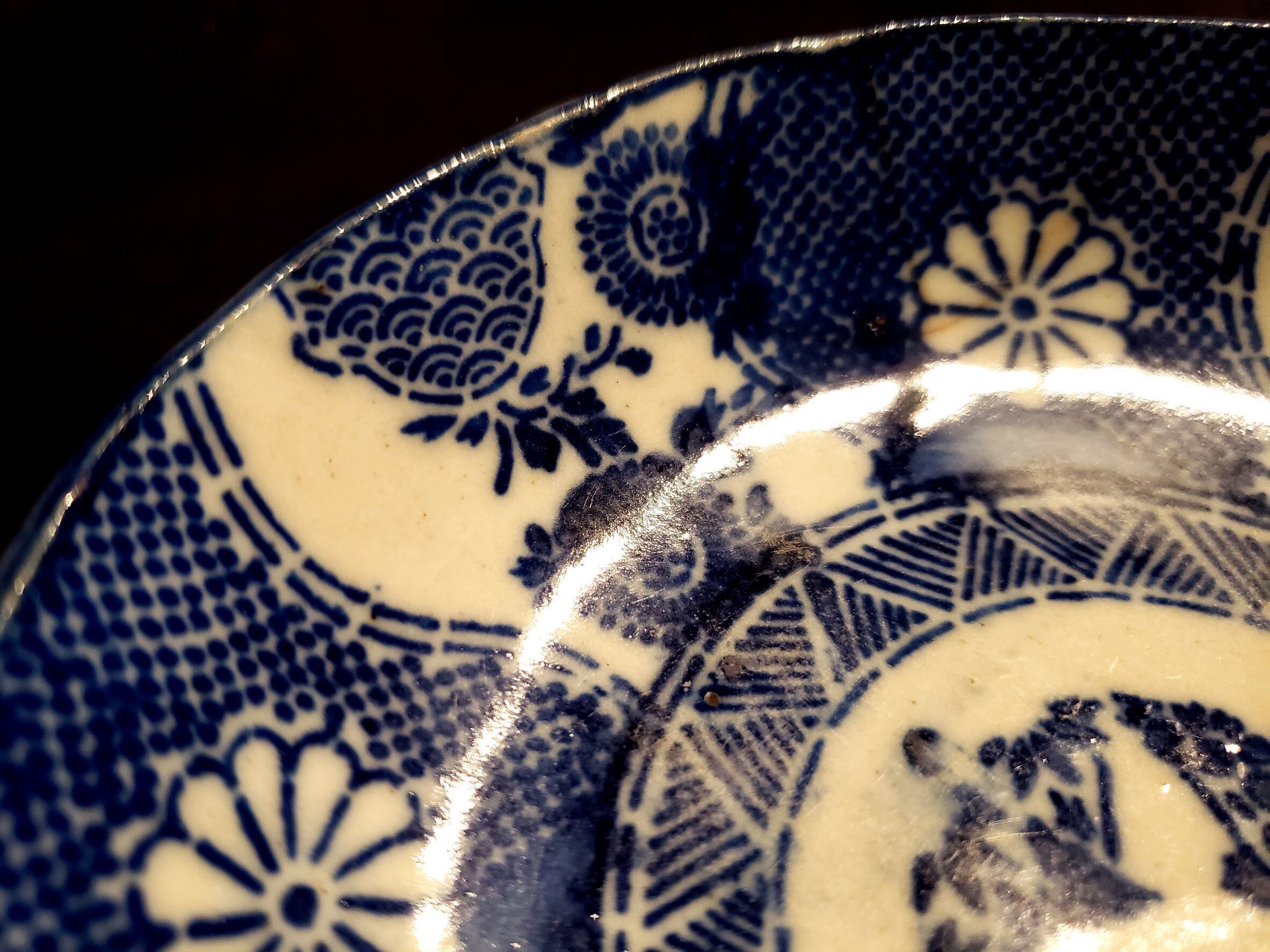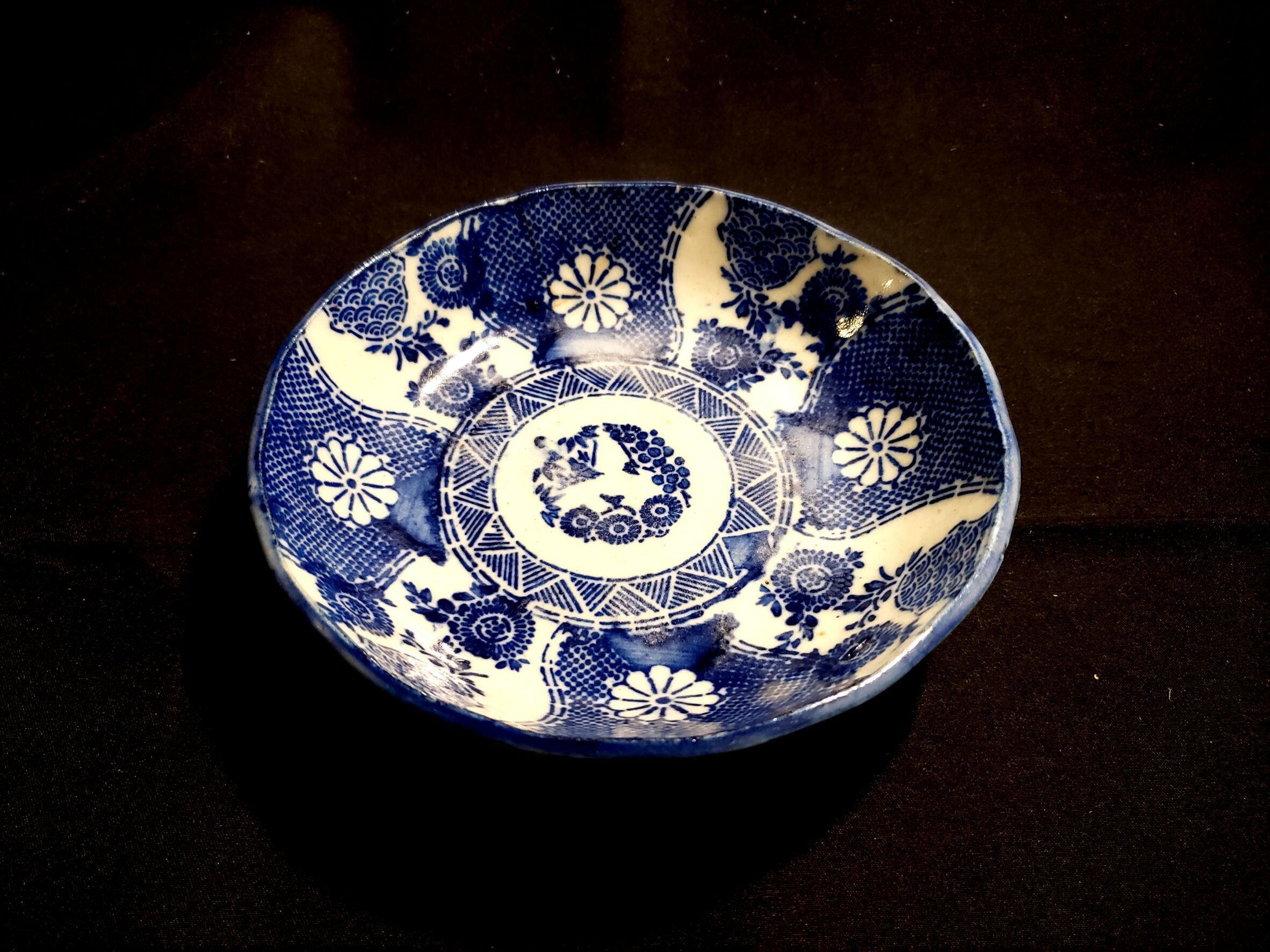 A sometsuke (blue-and-white) namasu bowl featuring a chrysanthemum motif, dating from the Meiji period.