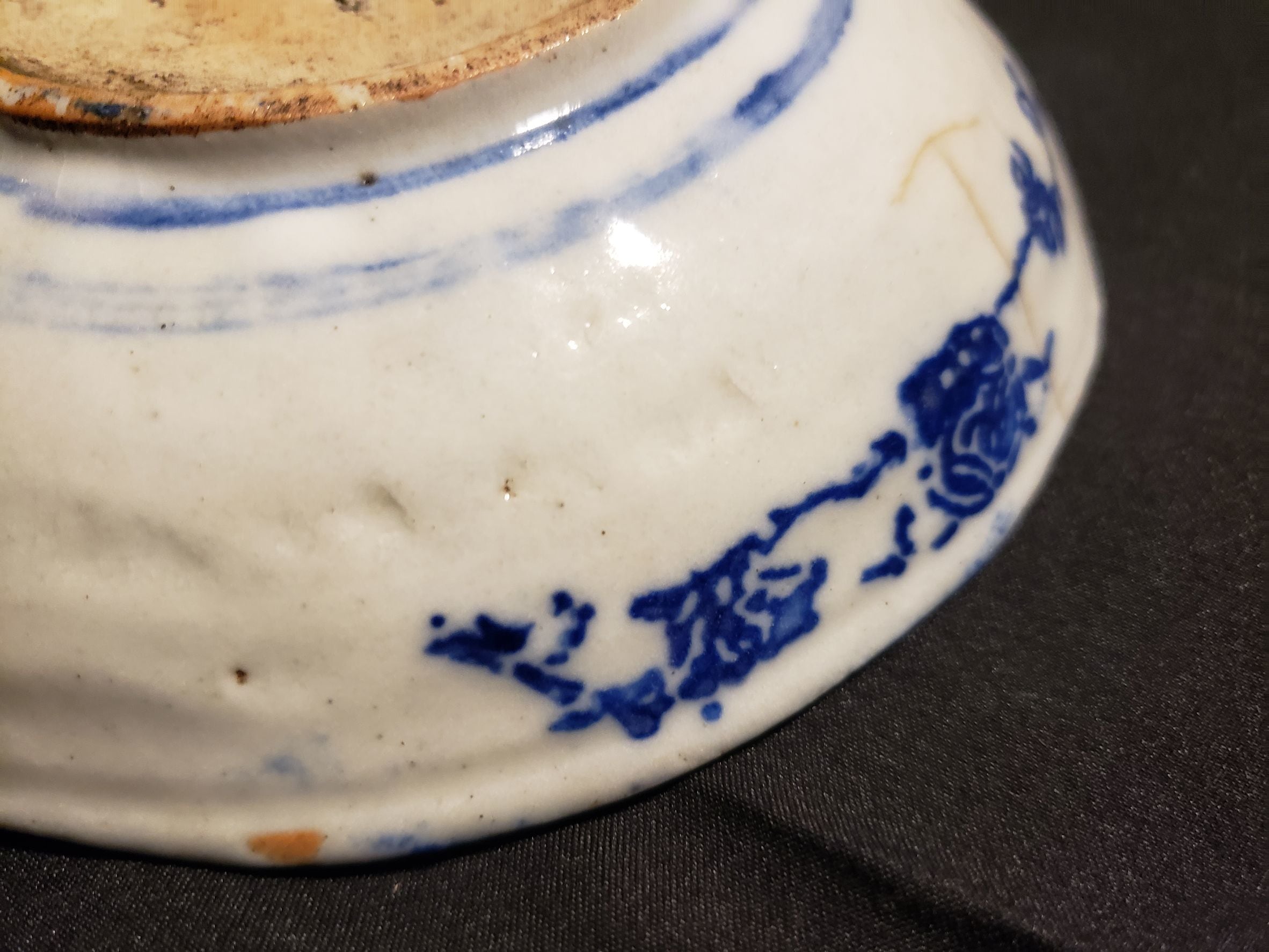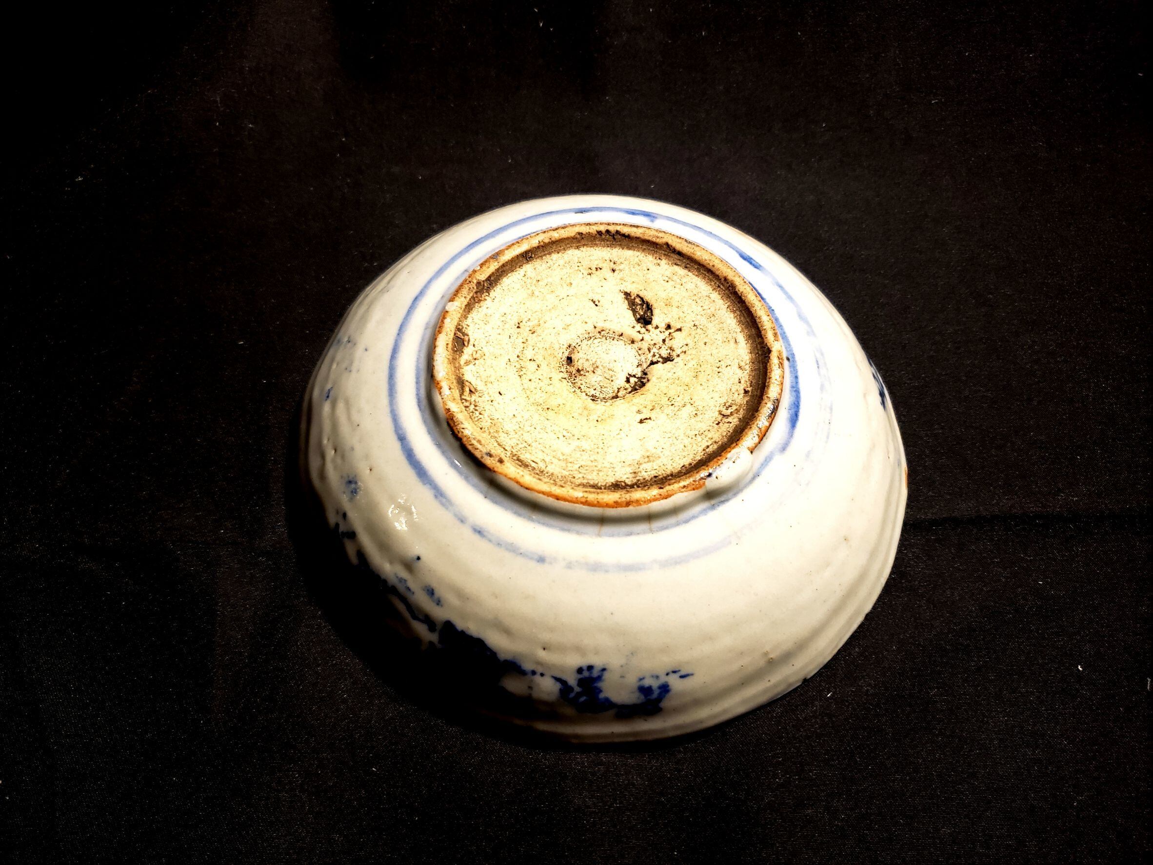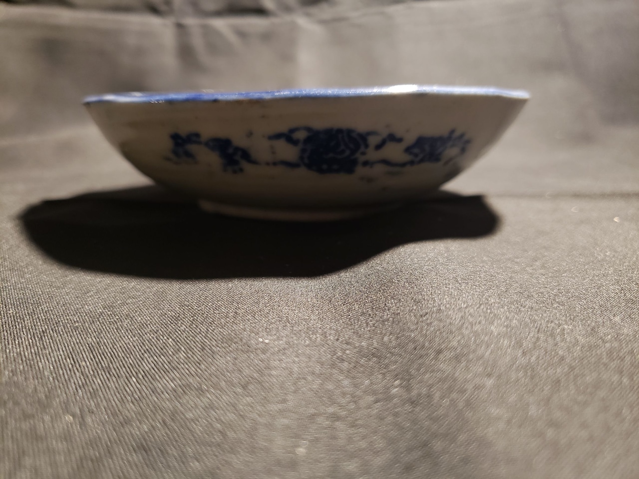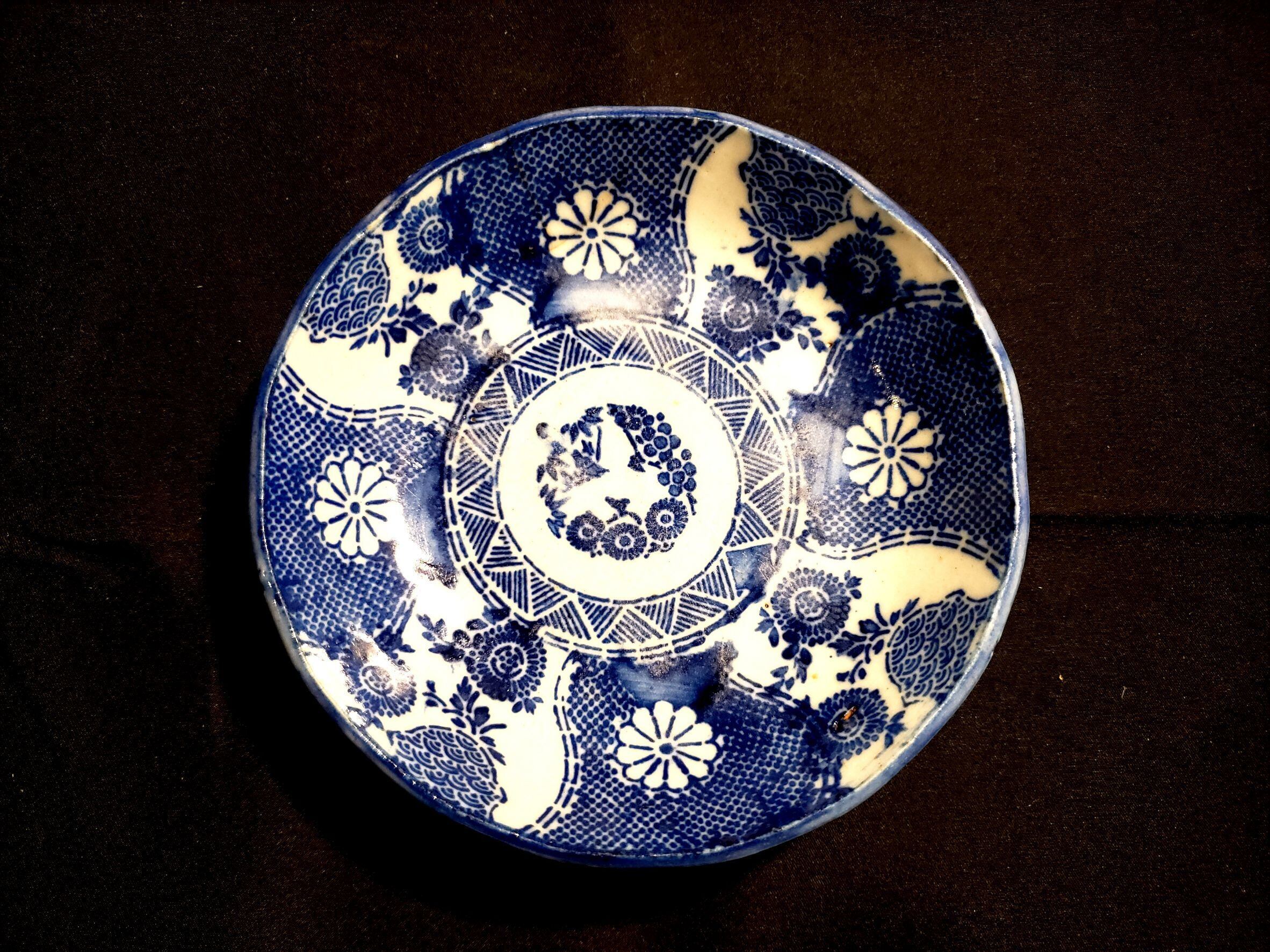 A sometsuke (blue-and-white) namasu bowl featuring a chrysanthemum motif, dating from the Meiji period.