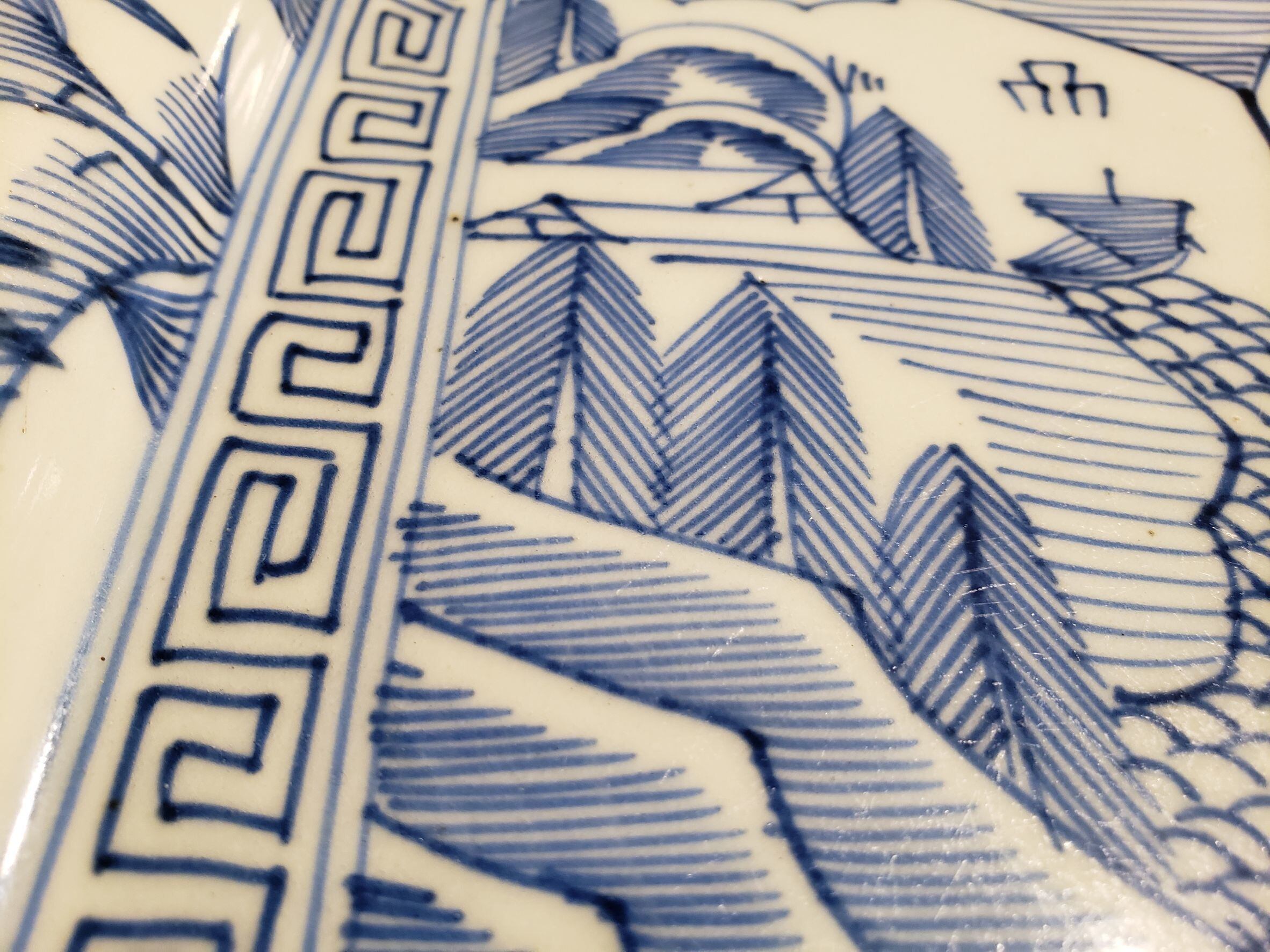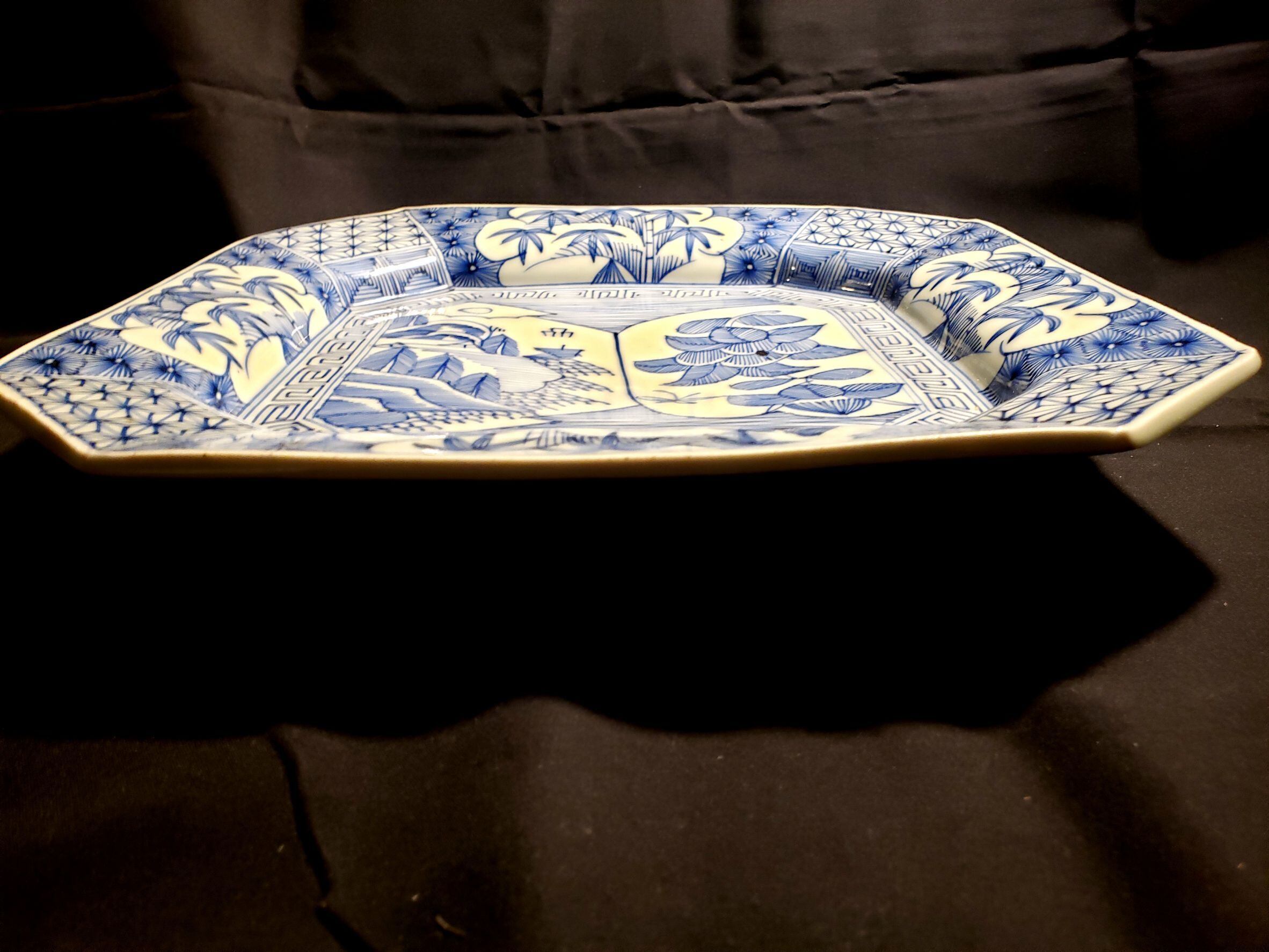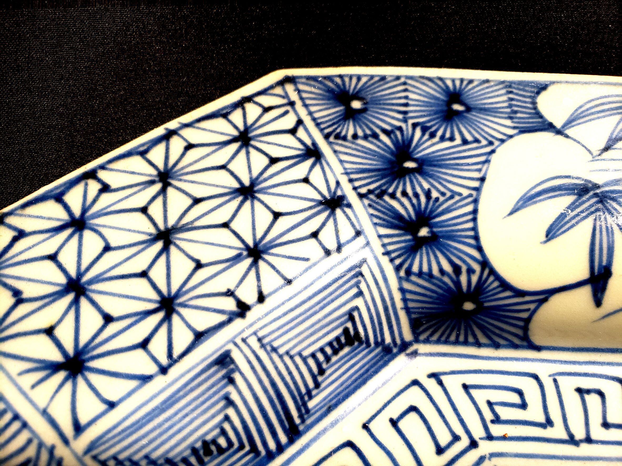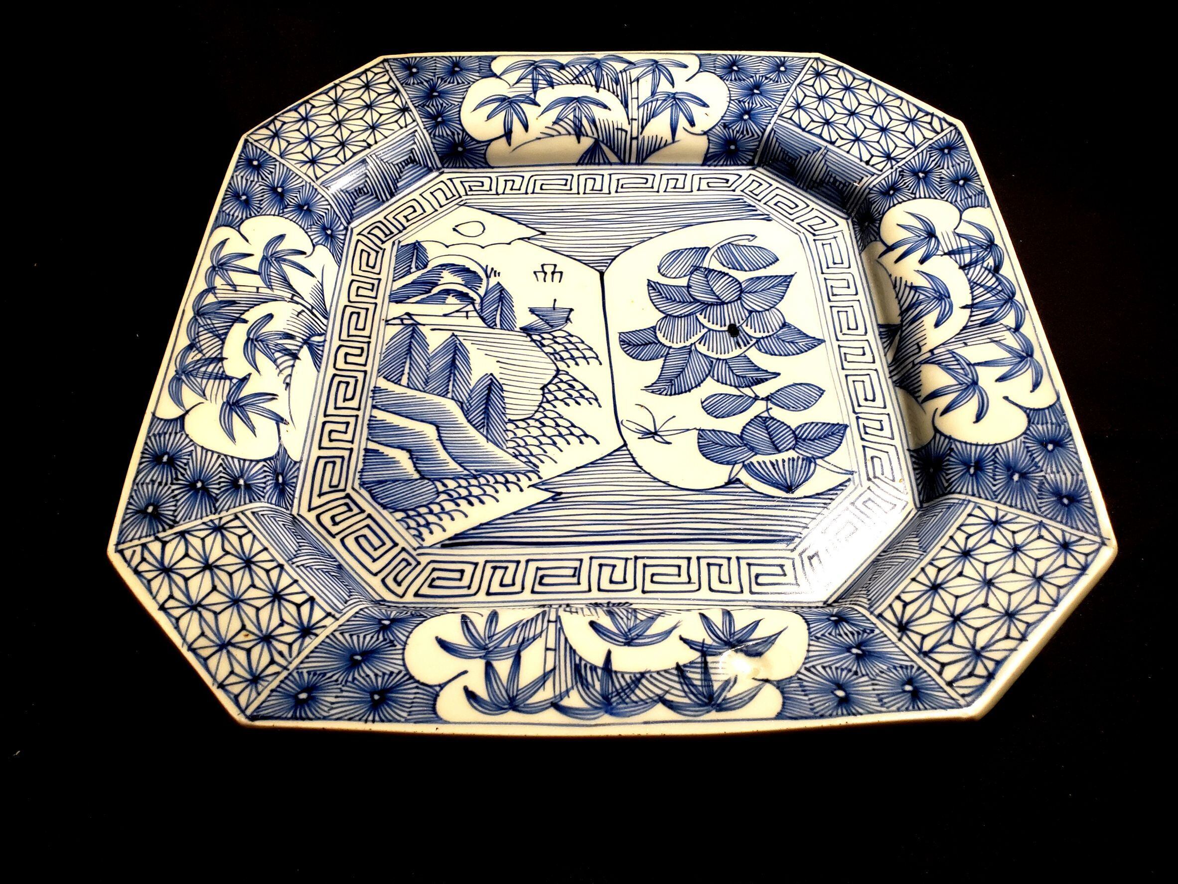 A large sometsuke (blue-and-white) octagonal plate from the Meiji to Taishō period.