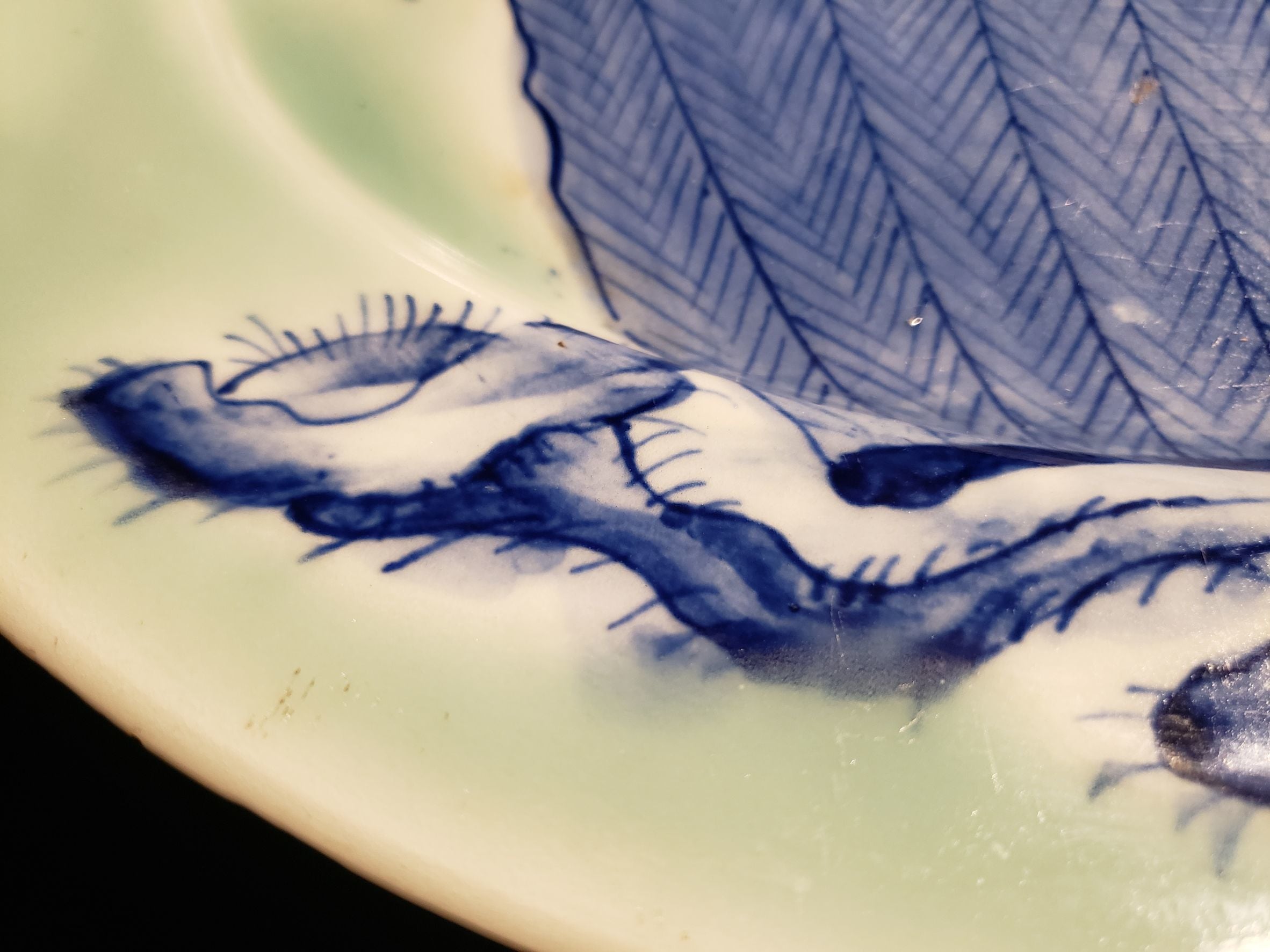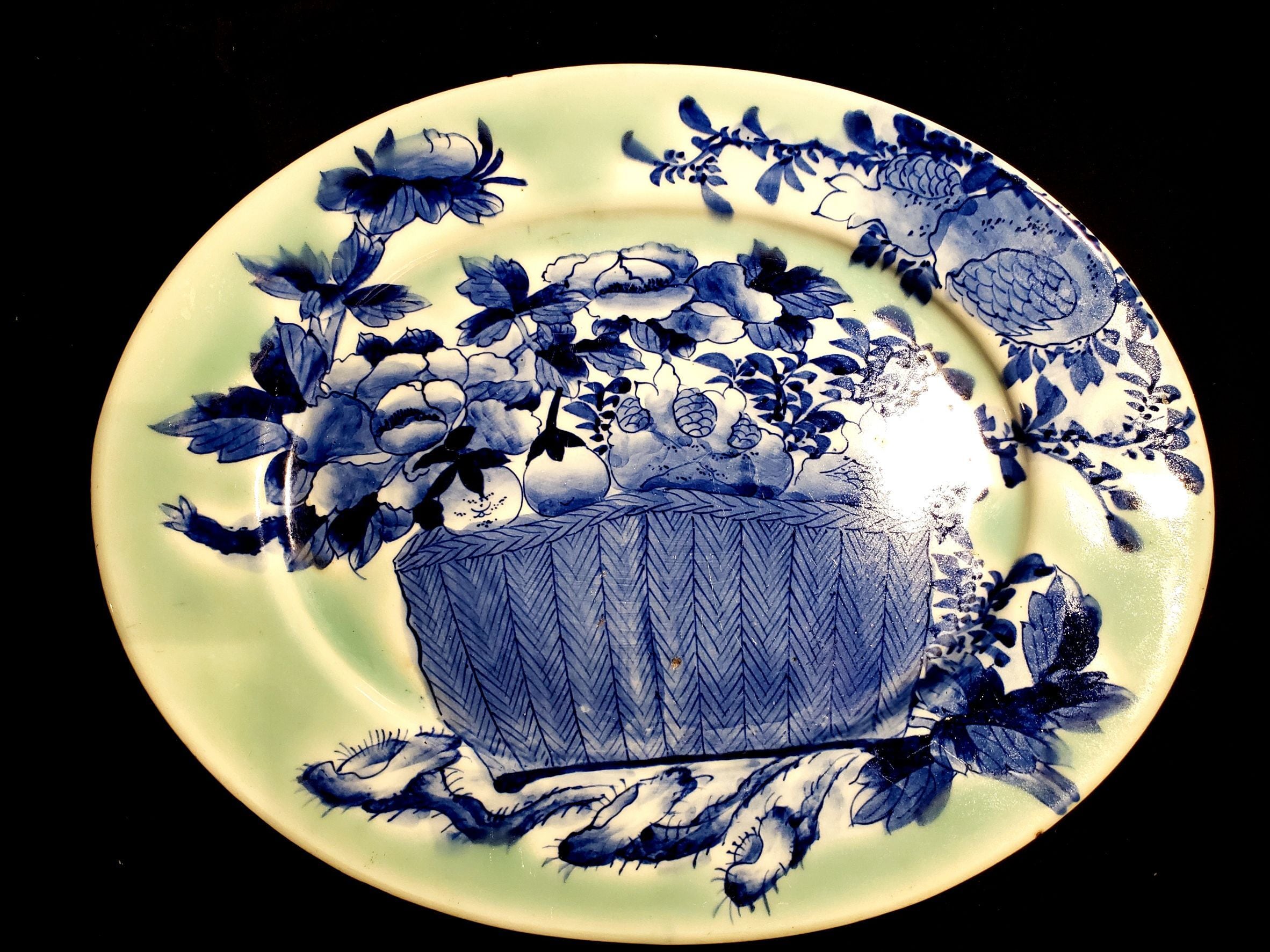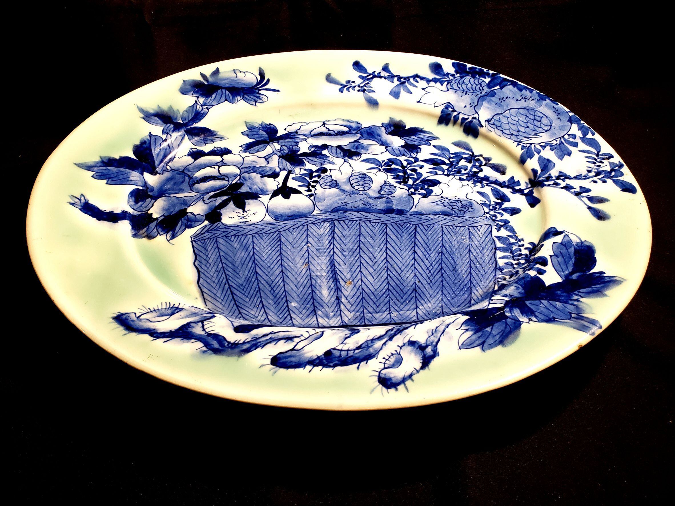 A large sometsuke celadon plate from the Meiji to Taishō period.