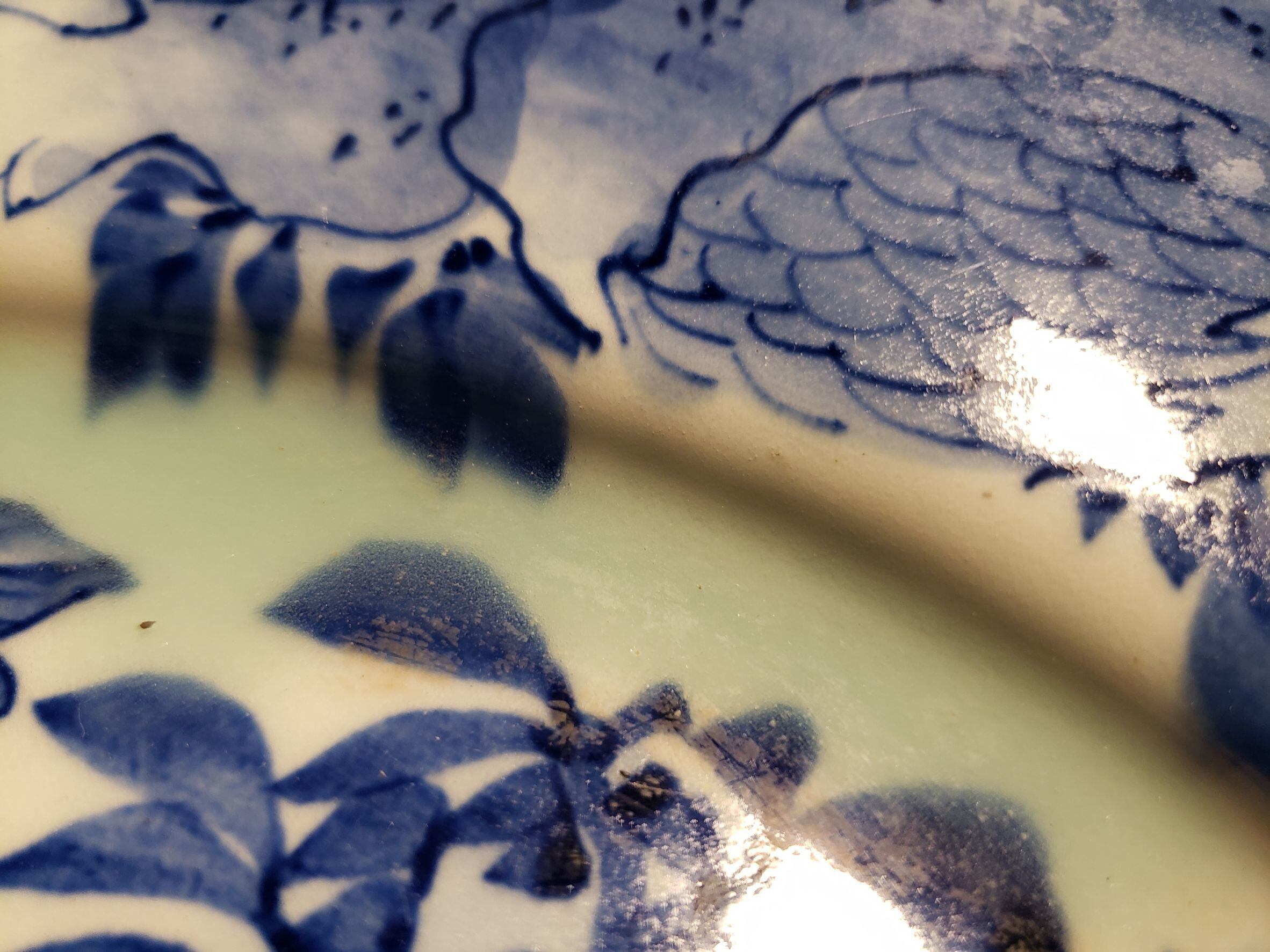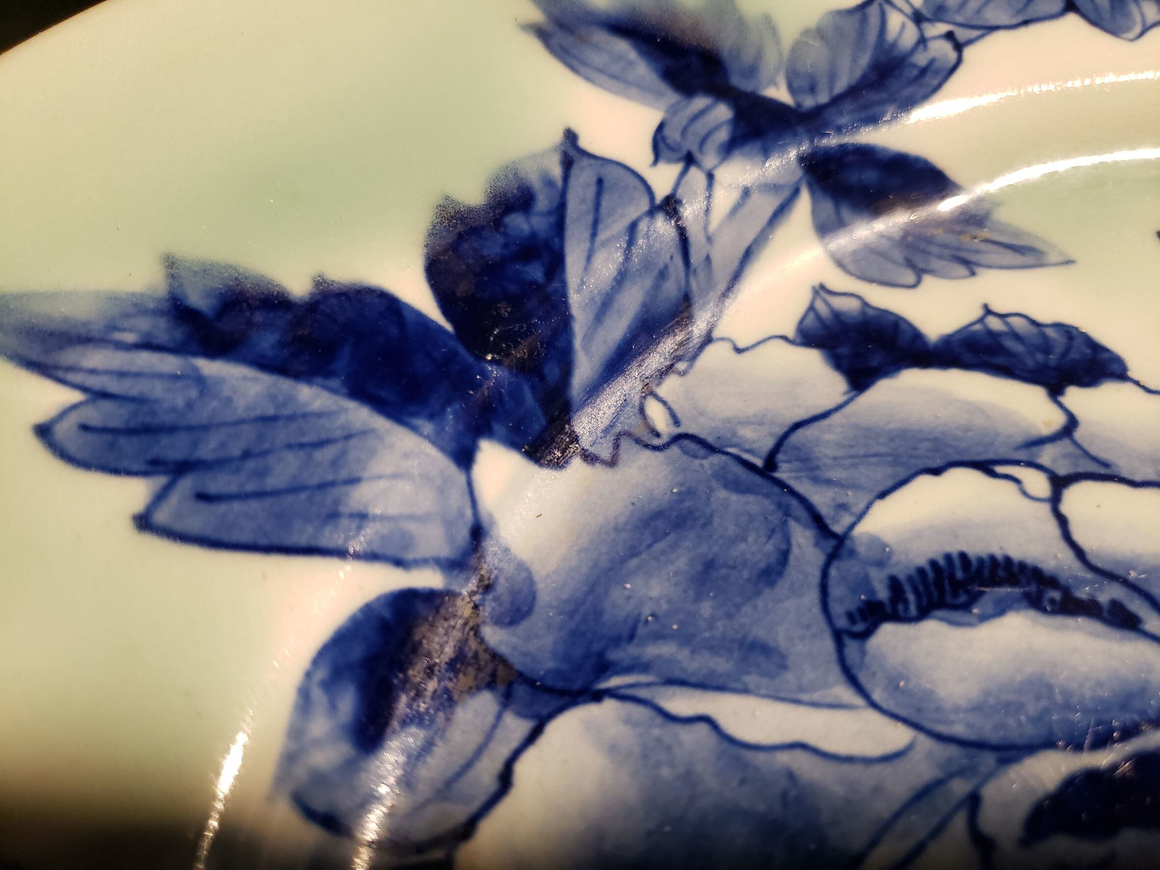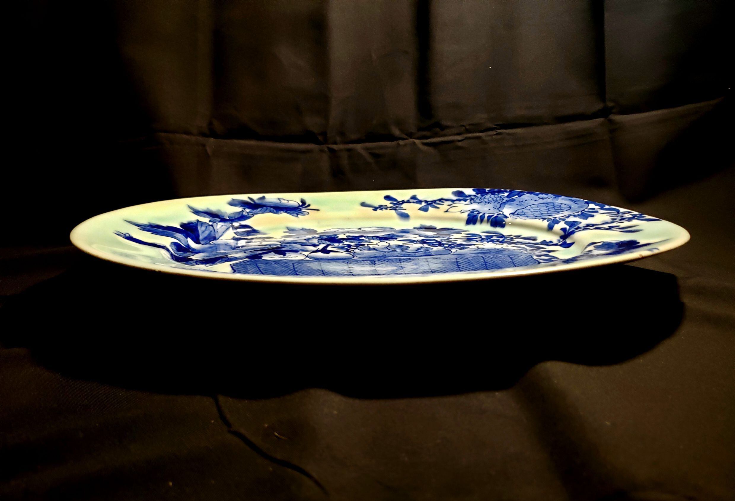 A large sometsuke celadon plate from the Meiji to Taishō period.