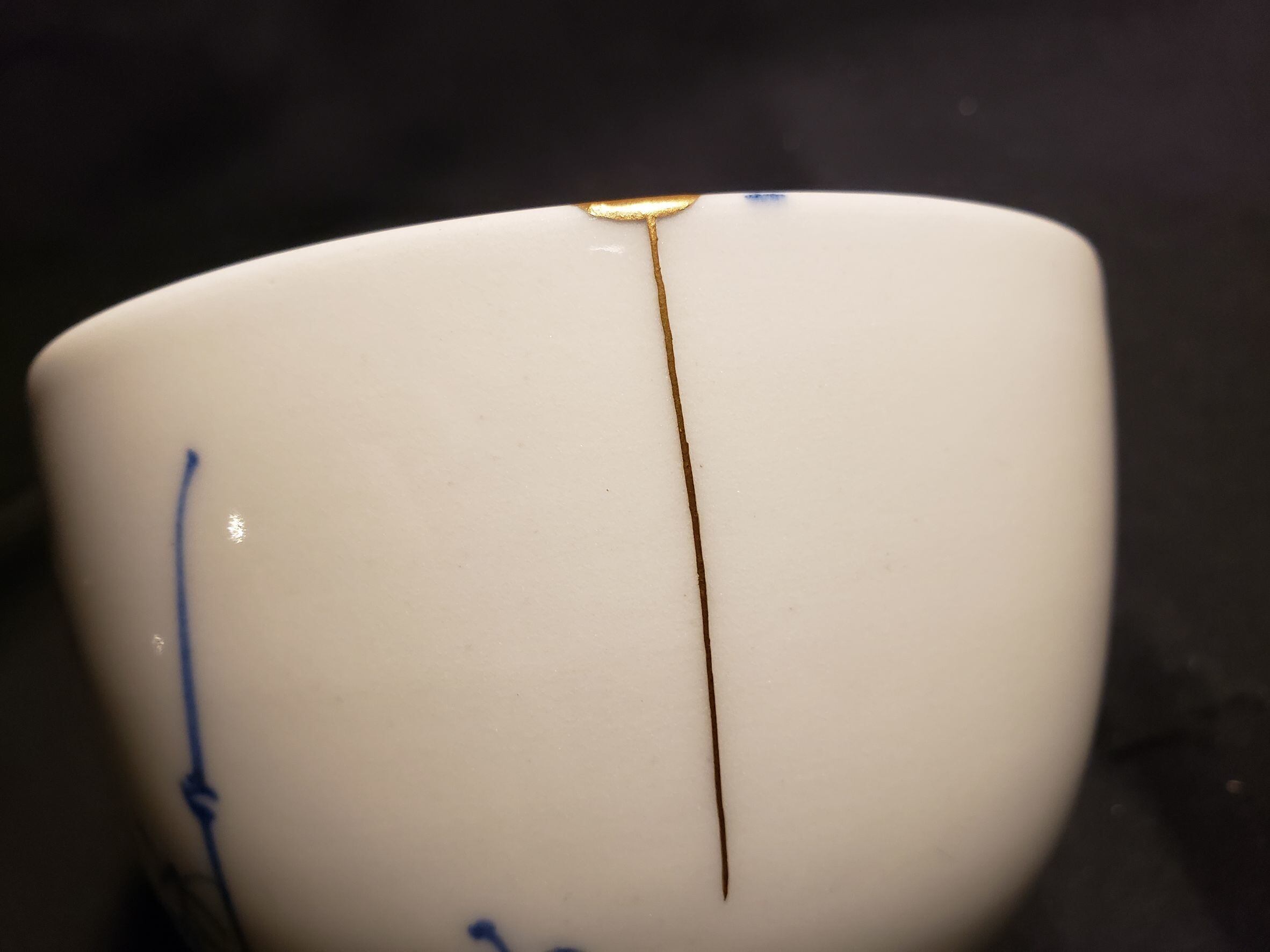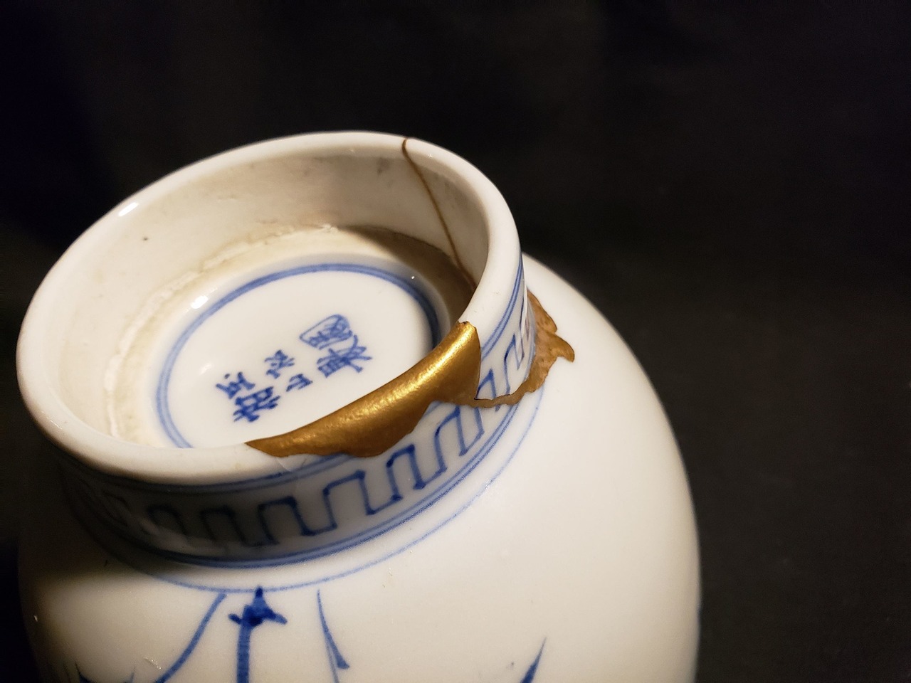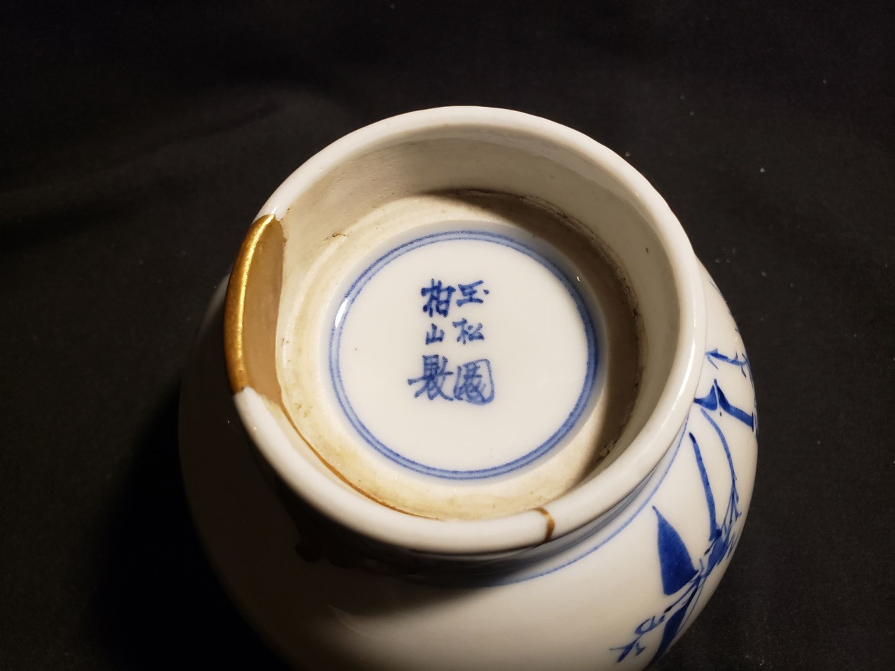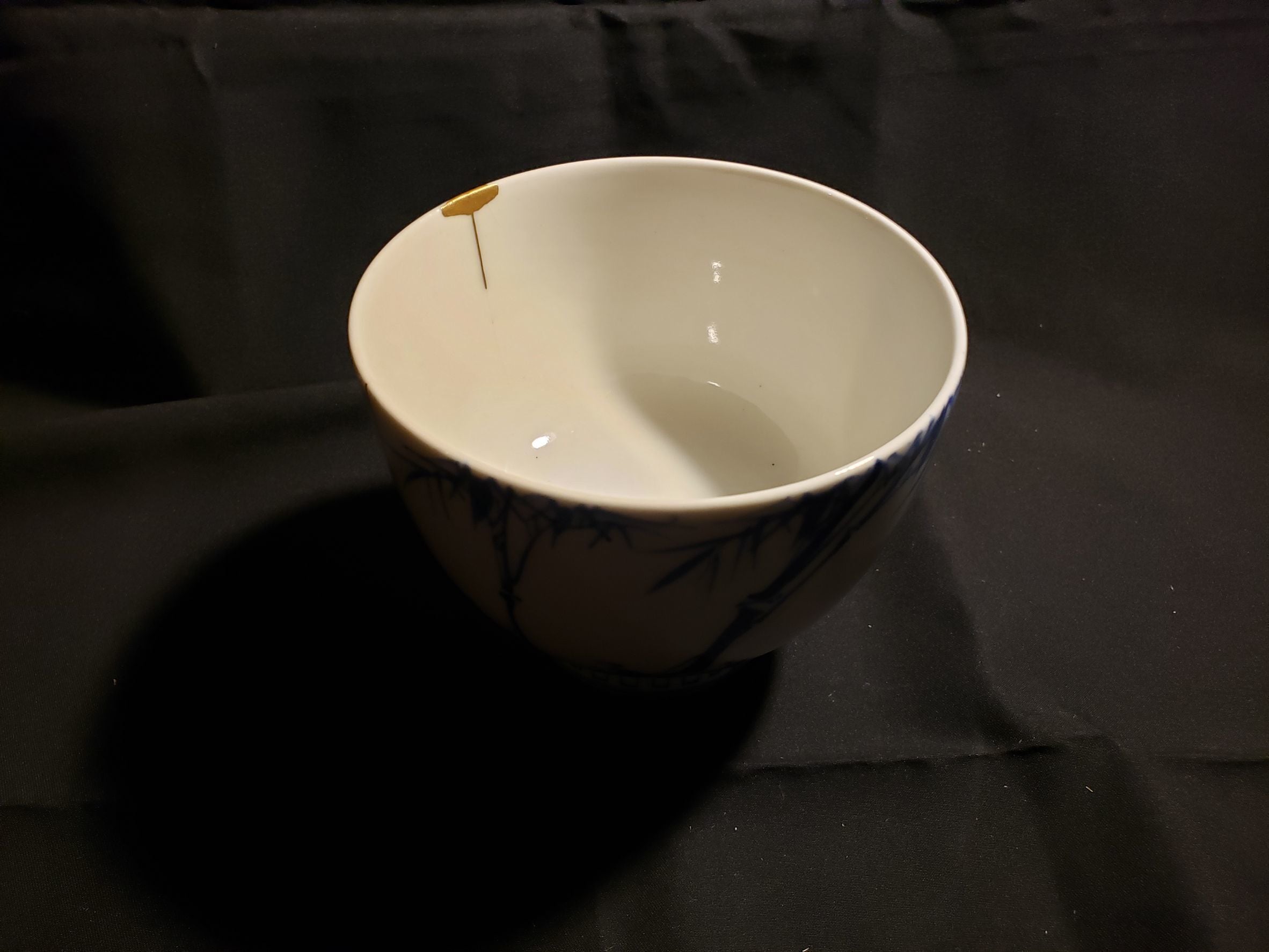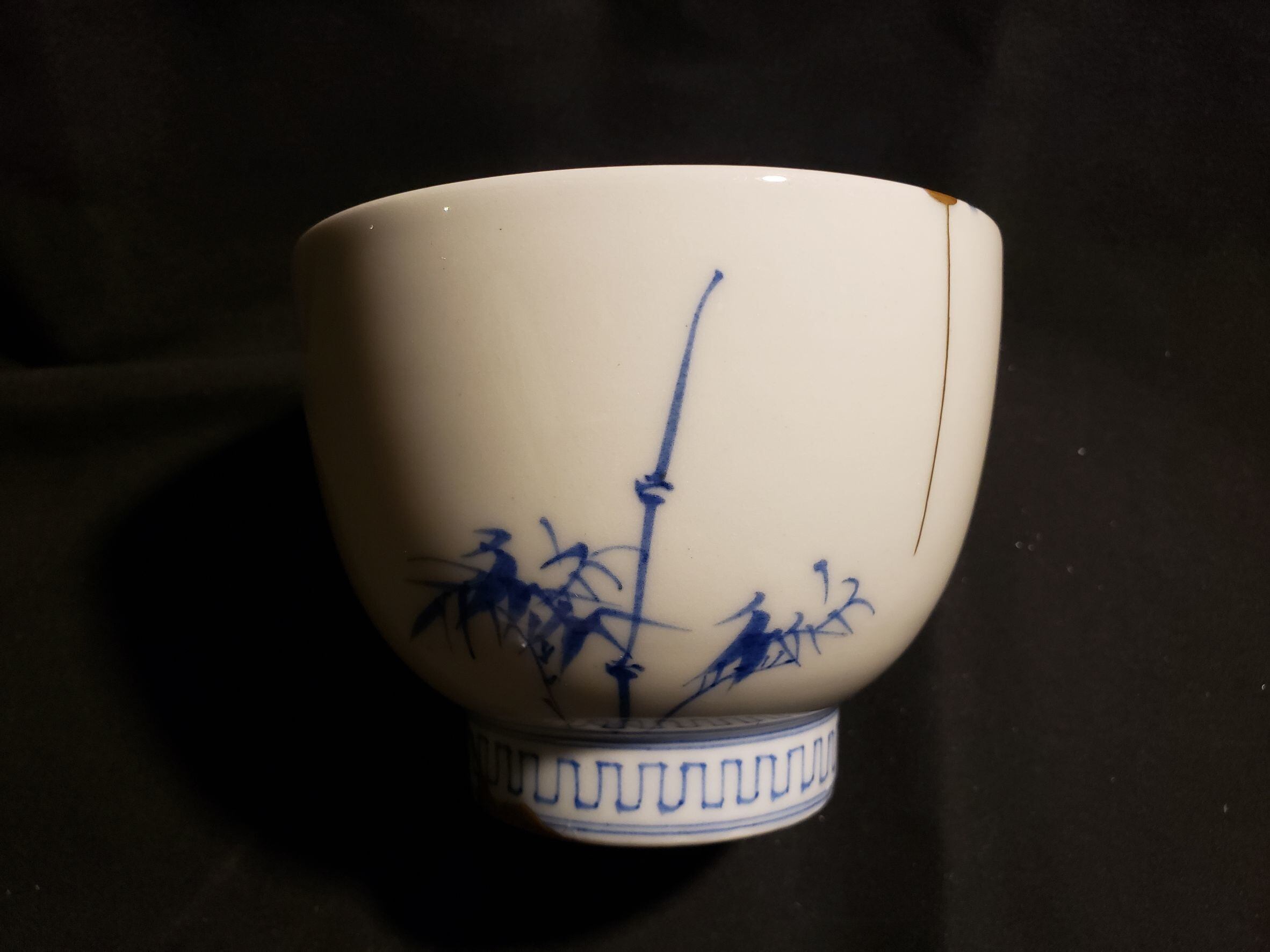 京焼 染付竹図小鉢(金継ぎ) 玉松園柏山製 S-0023
