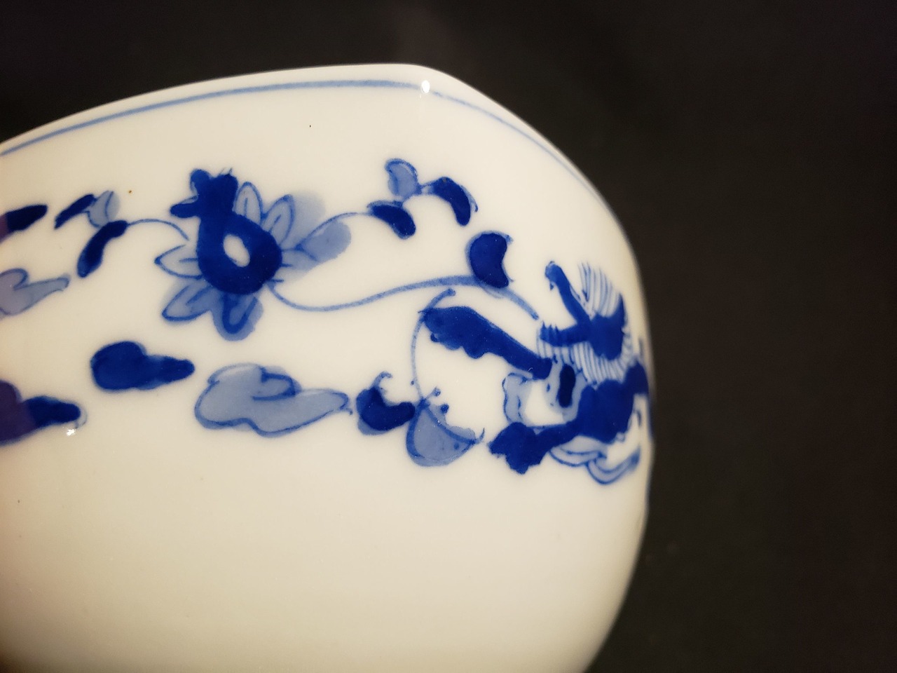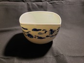 A sometsuke (blue-and-white) square bowl from the early Shōwa period.