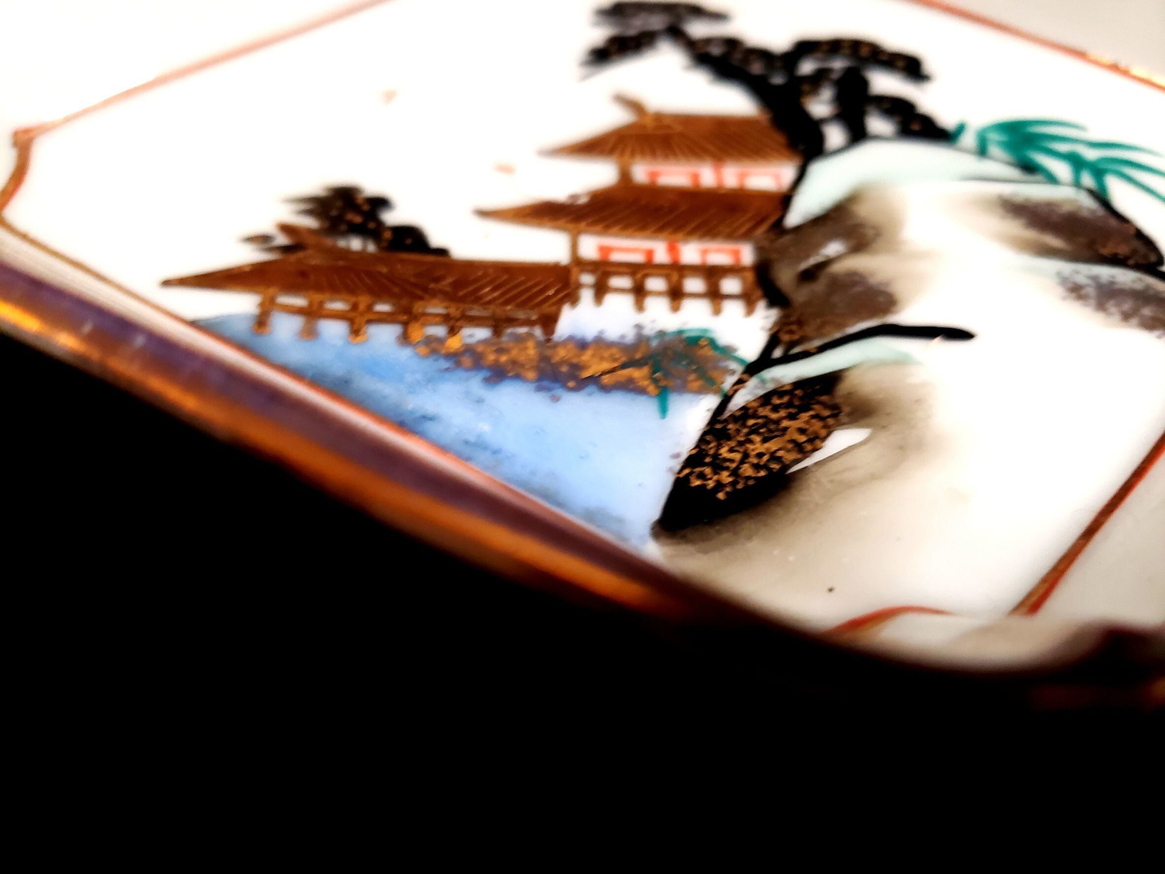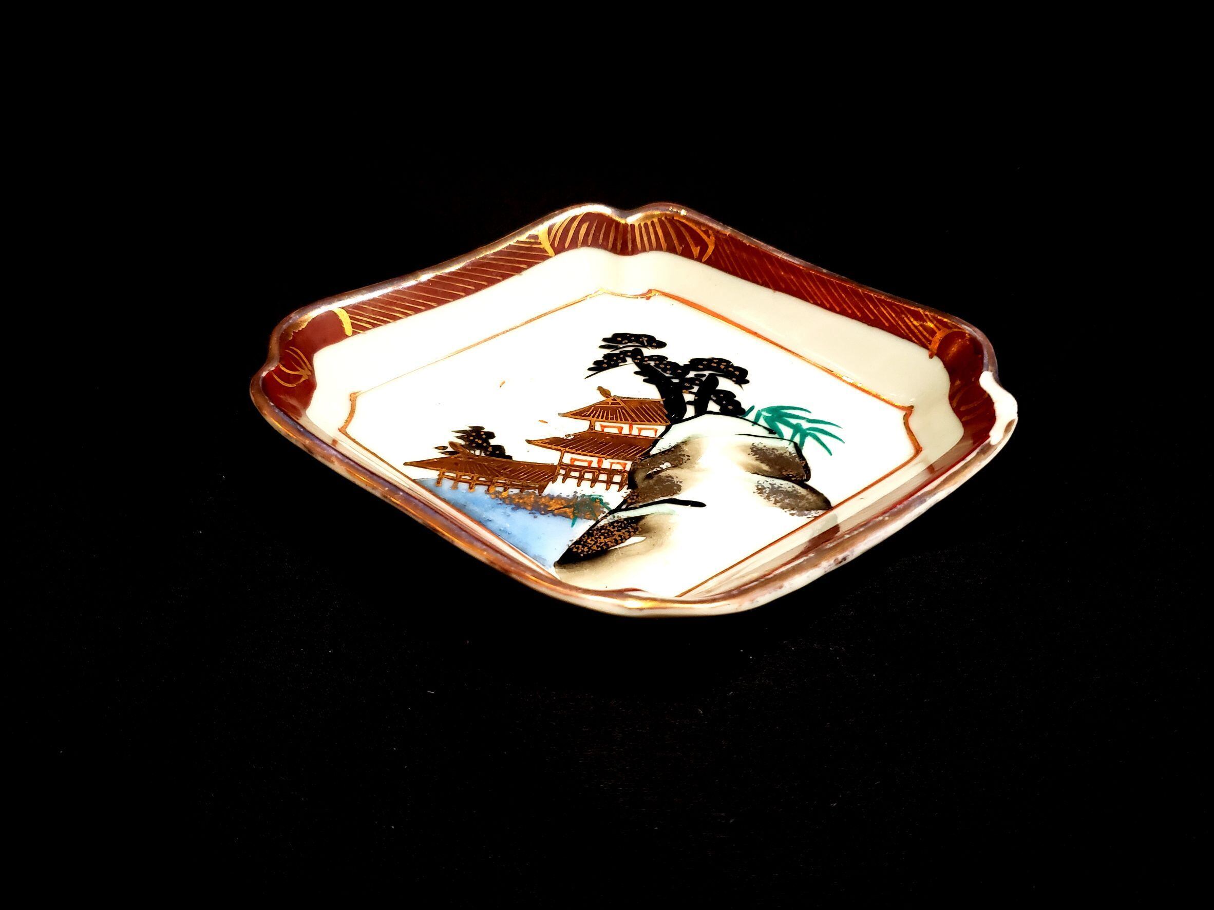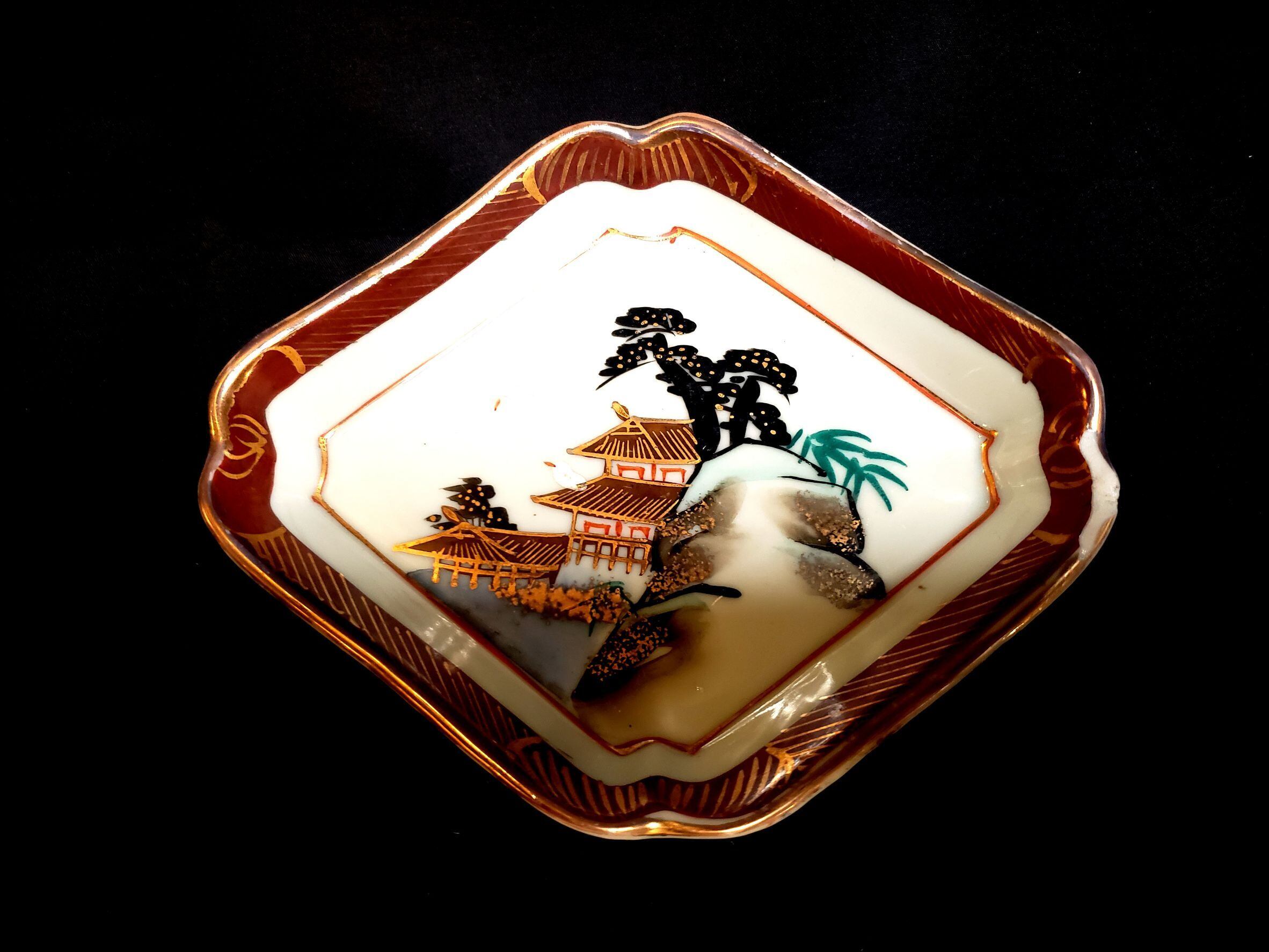 A Kutani-yaki rhombus-shaped plate from the Meiji to Taishō period.