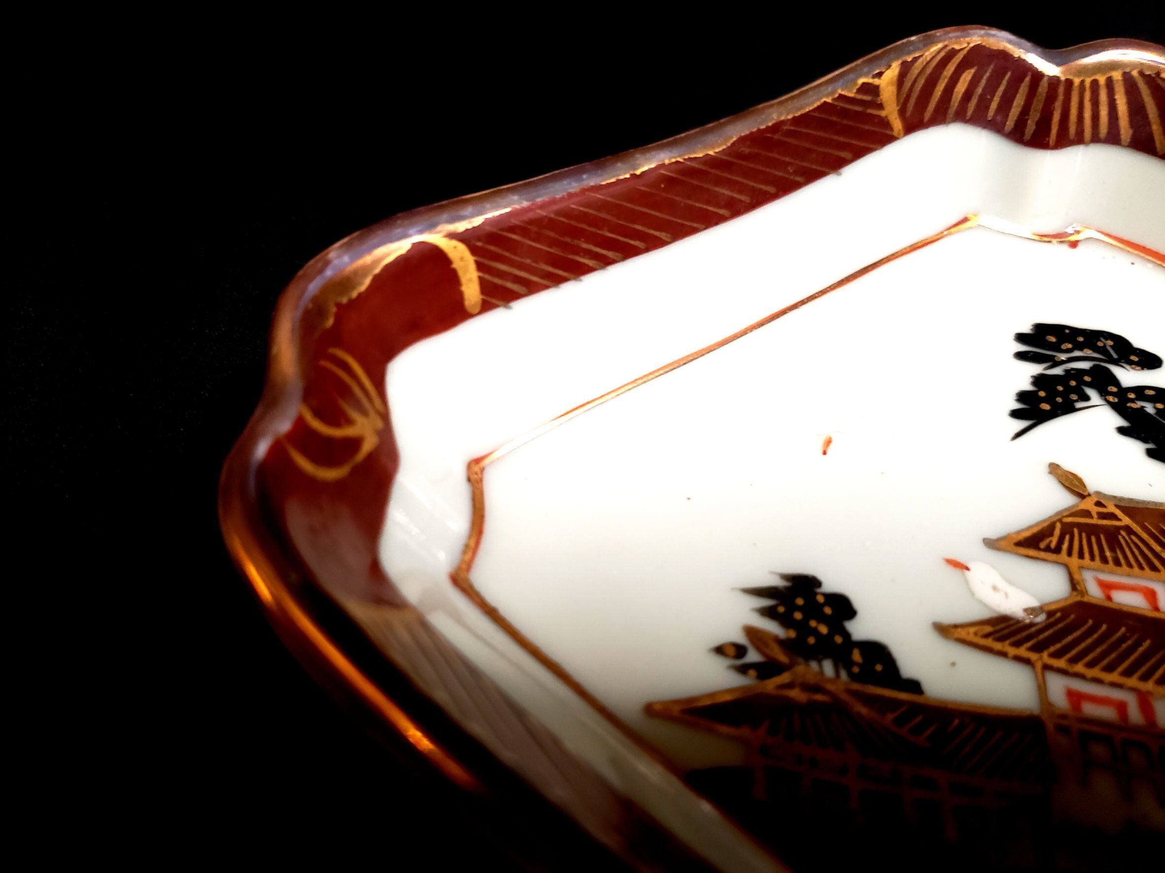 明治〜大正時代頃の「九谷焼 菱皿」。